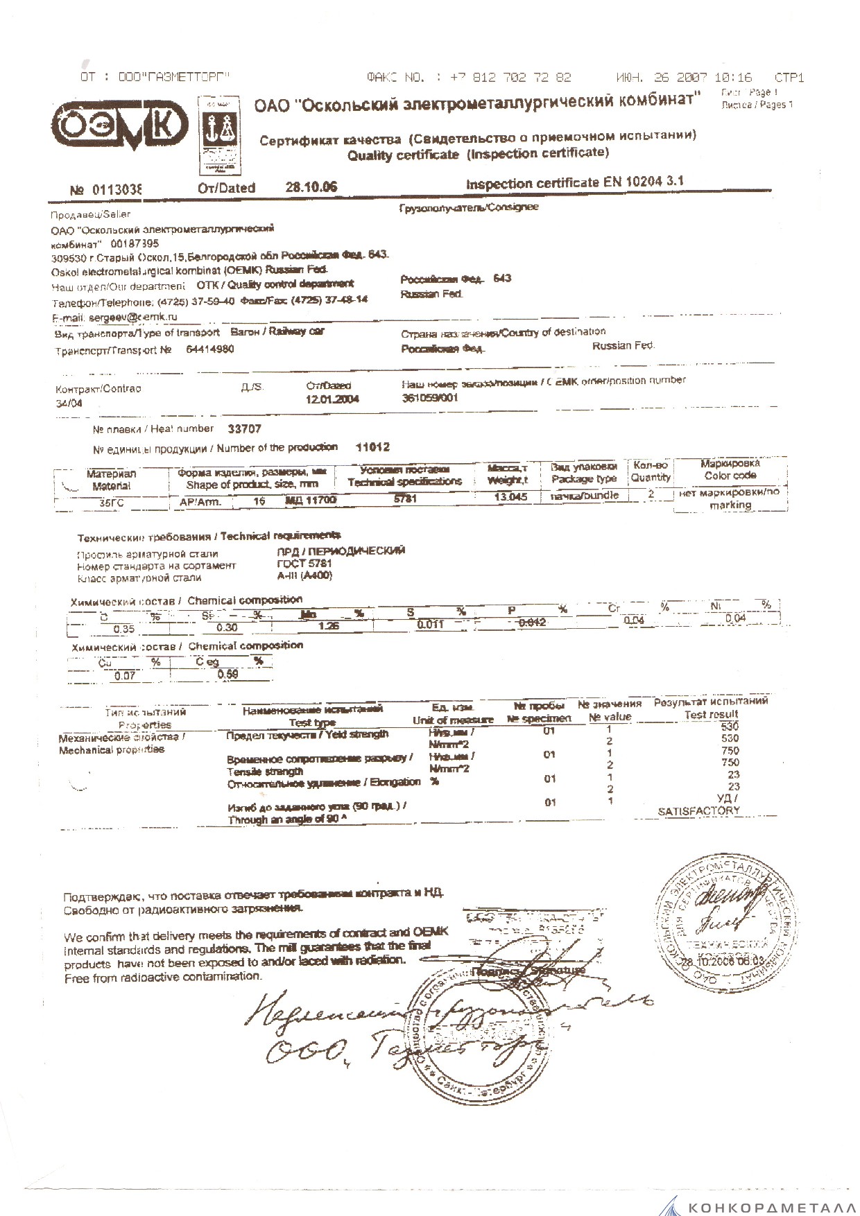 Подтвержденное сертификатами и действующими ГОСТ